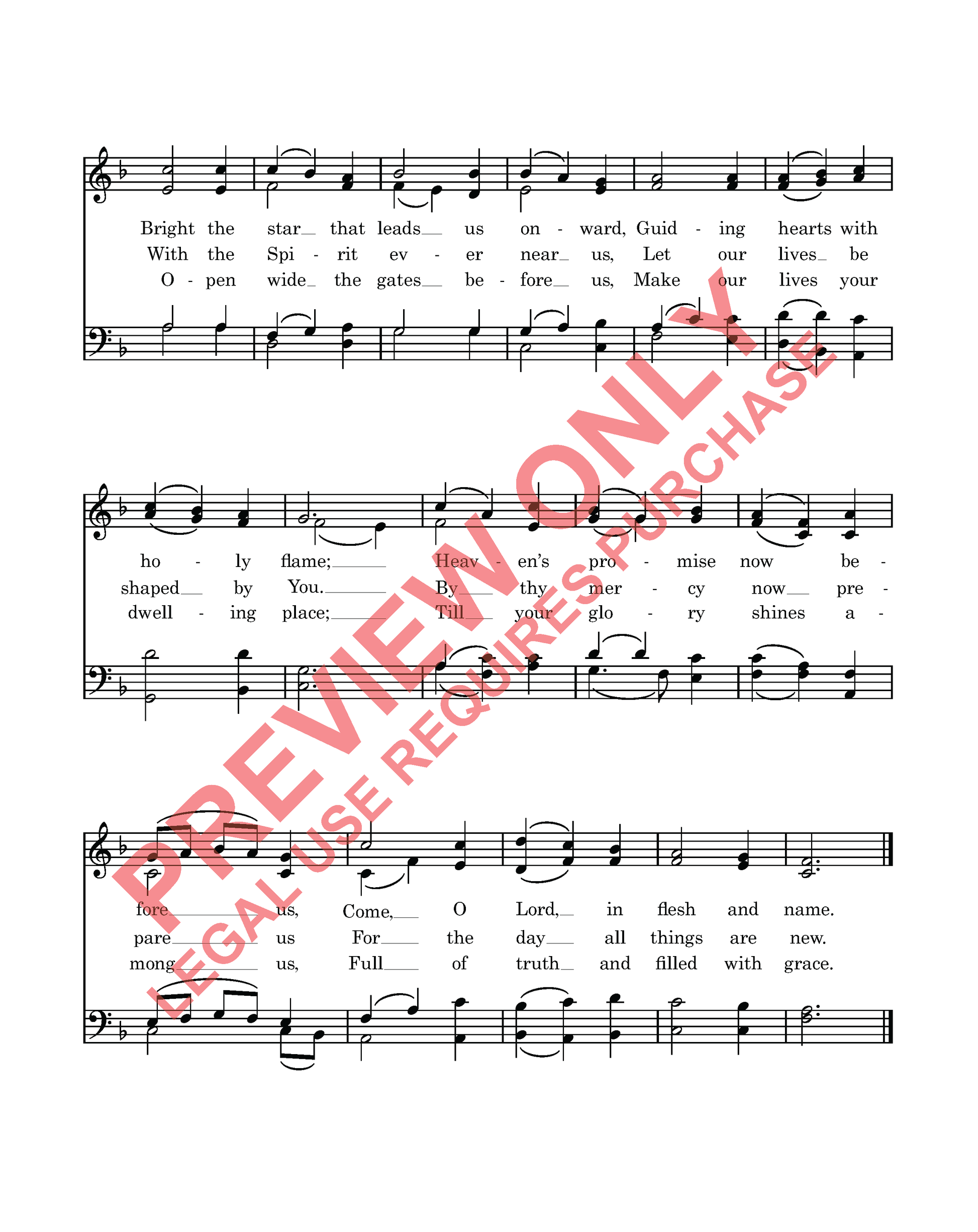 Bright the star that leads us onward, Guiding hearts with holy flame;
